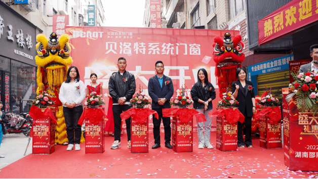 隨后,由貝洛特的系統門窗湖南邵陽旗艦店塔總上臺致辭,塔總說道:貝洛特系統門將以締造專業門窗第一品牌為目標,為廣大客戶提供優質的服務,高品質的產品和完善的售后服務,以答謝廣大客戶對貝洛特系統門的厚愛與支持。致辭過后,由貝洛特系統門窗營銷總監郭總、企業公司總助任助理及董事長秘書梁秘書湖南邵陽旗艦店總經理塔總等一同為此次開業活動剪彩。